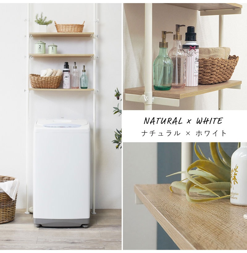 つっぱり 洗濯機ラック 幅70 突っ張り棚 ランドリーラック 収納 おしゃれ 木目 突っ張り棒 棚 伸縮 調節 壁面収納 突っ張りラック スリム 白 ホワイト おしゃれ【送料無料】