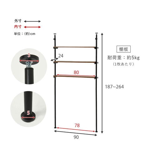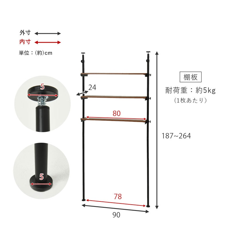 (約)幅90×奥行24×高さ187~最大264cm
