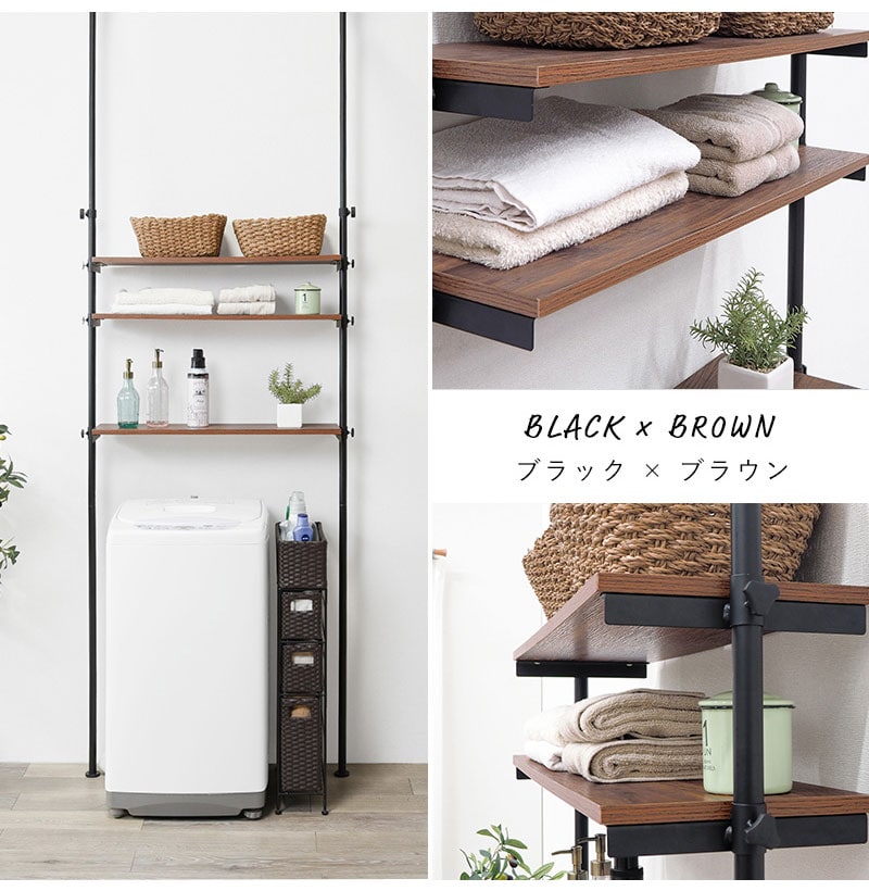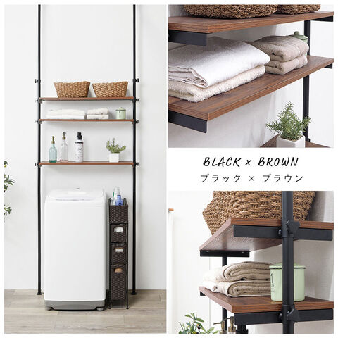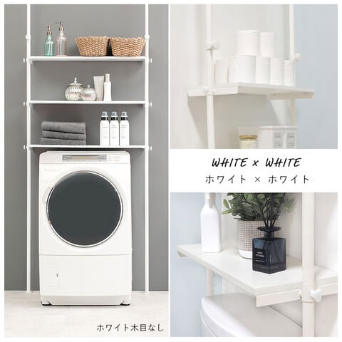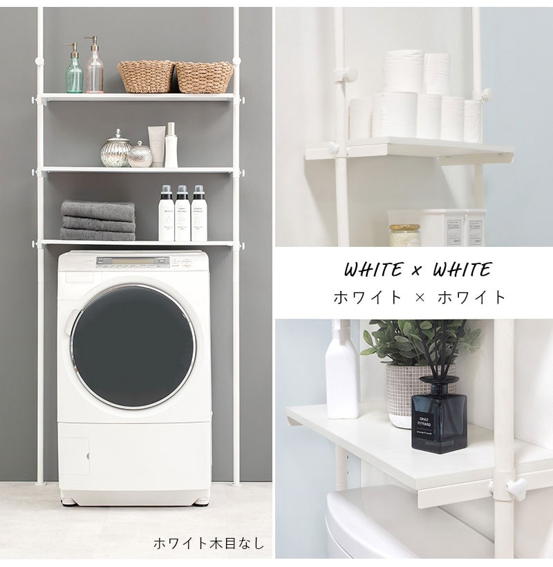 つっぱり 洗濯機ラック 幅90 突っ張り棚 ランドリーラック 収納 おしゃれ 木目 突っ張り棒 棚 伸縮 調節 壁面収納 突っ張りラック スリム 白 ホワイト おしゃれ【送料無料】