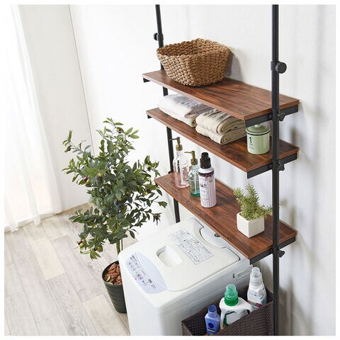 天井と床に突っ張るだけで設置できる洗濯機ラック。
