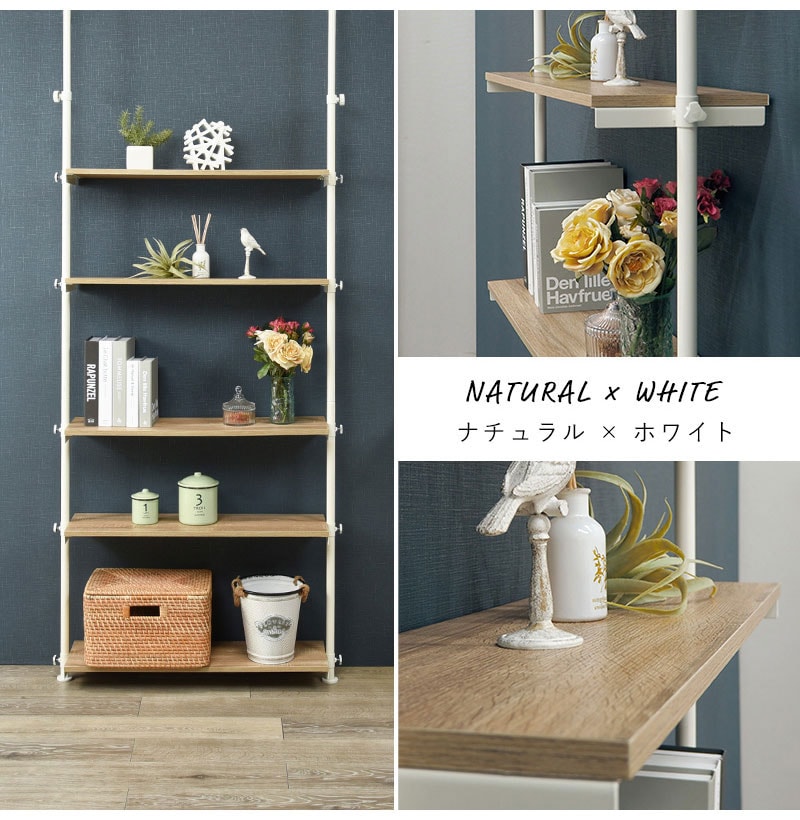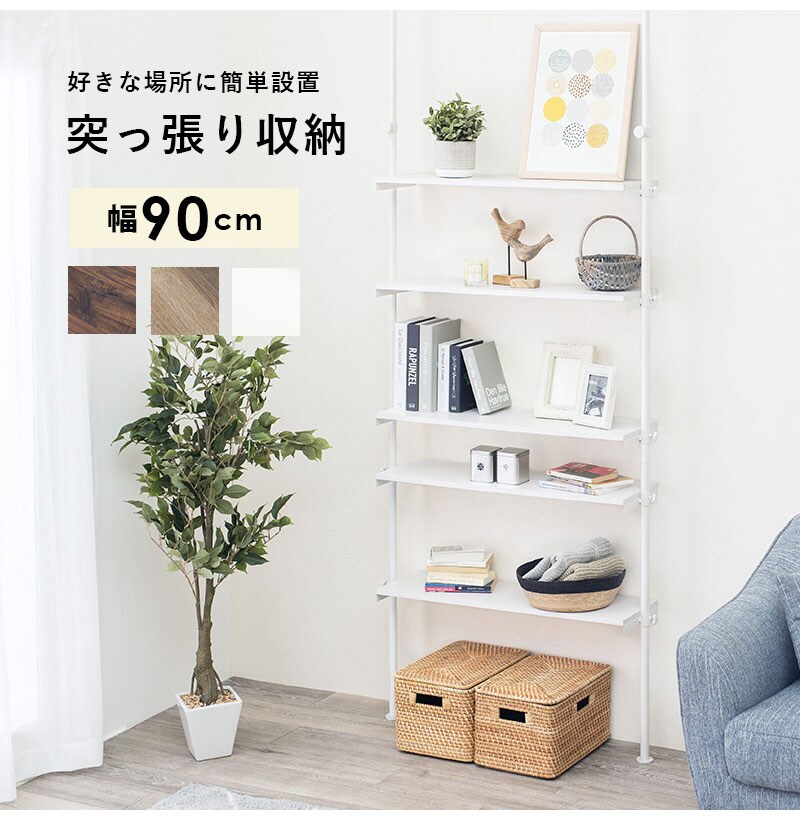 つっぱり ラック 幅90 突っ張り棚 収納 おしゃれ 木目 突っ張り棒 棚 伸縮 調節 壁面収納 間仕切り 突っ張りラック 本棚 シェルフ スリム 白 ホワイト おしゃれ【送料無料】