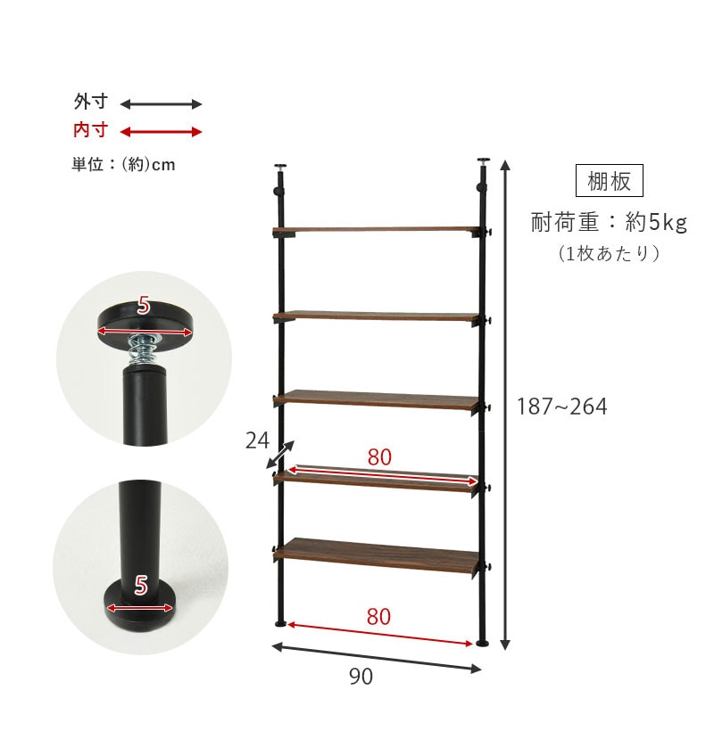 (約)幅90×奥行24×高さ187~最大264cm