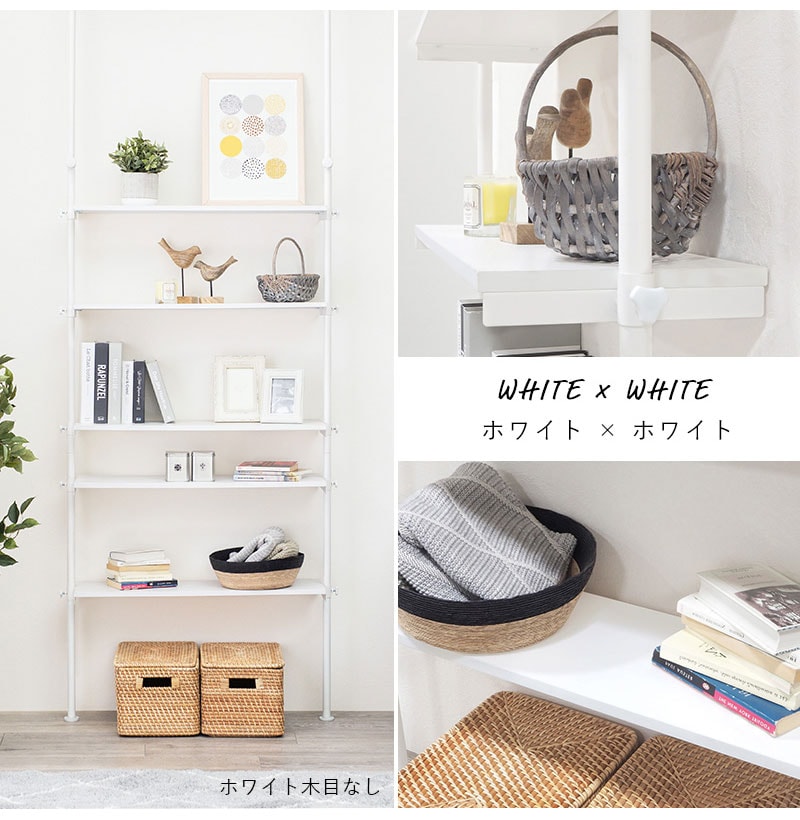つっぱり ラック 幅90 突っ張り棚 収納 おしゃれ 木目 突っ張り棒 棚 伸縮 調節 壁面収納 間仕切り 突っ張りラック 本棚 シェルフ スリム 白 ホワイト おしゃれ【送料無料】のレビュー