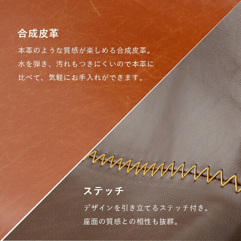 革の風合いを楽しめる合成皮革なのでお手入れも簡単。