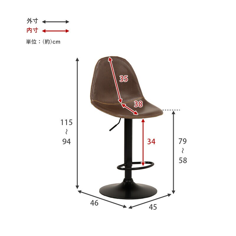 幅45×奥行き46×高さ94~115cm(座面高58~79cm)