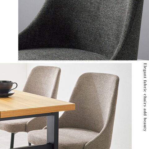 肘がないので立ち座りがしやすく、背もたれの曲線が身体にフィットします。張地はヴィンテージ感のある合成皮革とサラッとした手触りのファブリックから選べます。