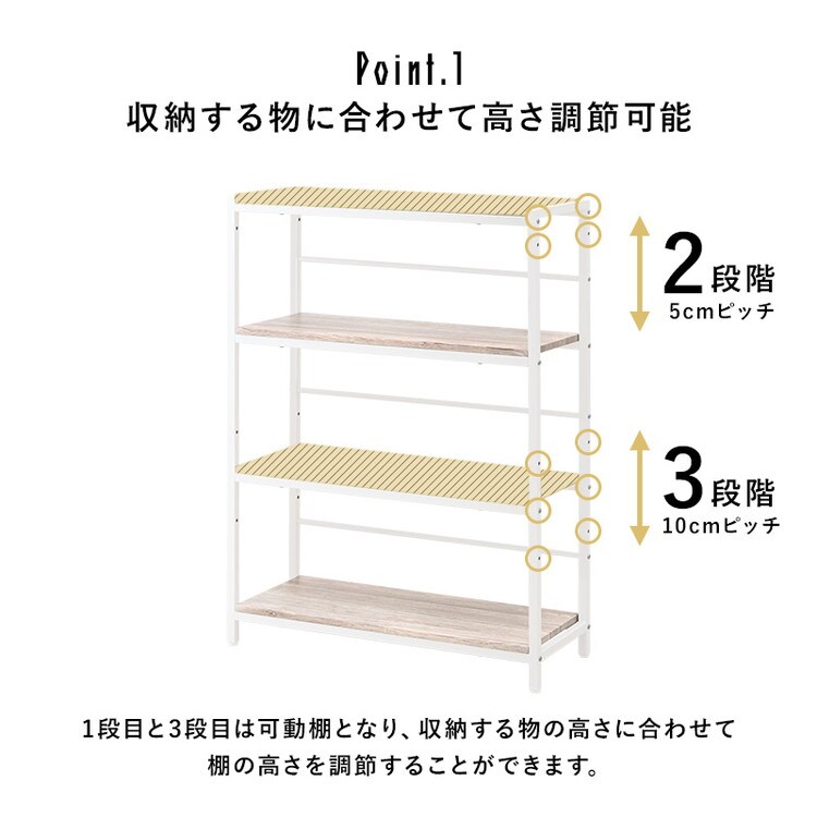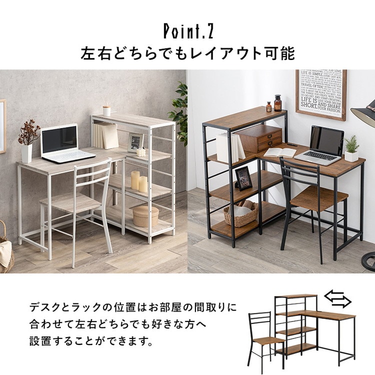 デスク・チェア・4段ラックの3点セット。収納力の高いラック付きデスクとして使ったり、別々にシリーズ家具としてコーディネートしたりとレイアウトを変えられます。
