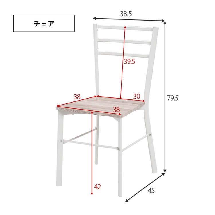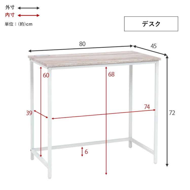 デスク:(約)幅80×奥行45×高さ72cm、チェア:(約)幅38.5×奥行45×高さ79.5×座面高42cm、ラック:(約)幅75×奥行30×高さ102cm