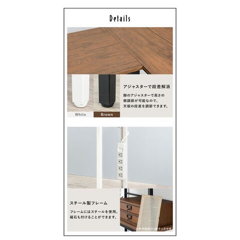 フレーム:スチール、天板・座面:合成樹脂化粧繊維板(塩化ビニル)