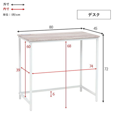 デスク:デスク:(約)幅100×奥行45×高さ72cm (約)幅80×奥行45×高さ72cm、チェア:(約)幅38.5×奥行45×高さ79.5×座面高42cm