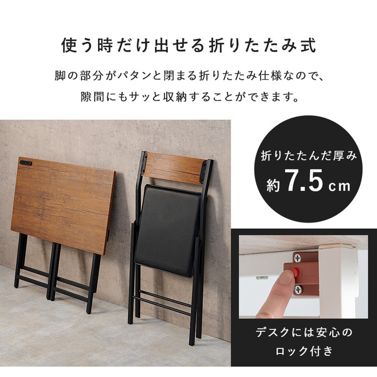 収納式 折りたたみデスク&チェア 2点セット 幅80cm 2口コンセント デスクチェアセット 折りたたみテーブル 折り畳み デスク チェア コンパクト 作業台 おしゃれ【送料無料】