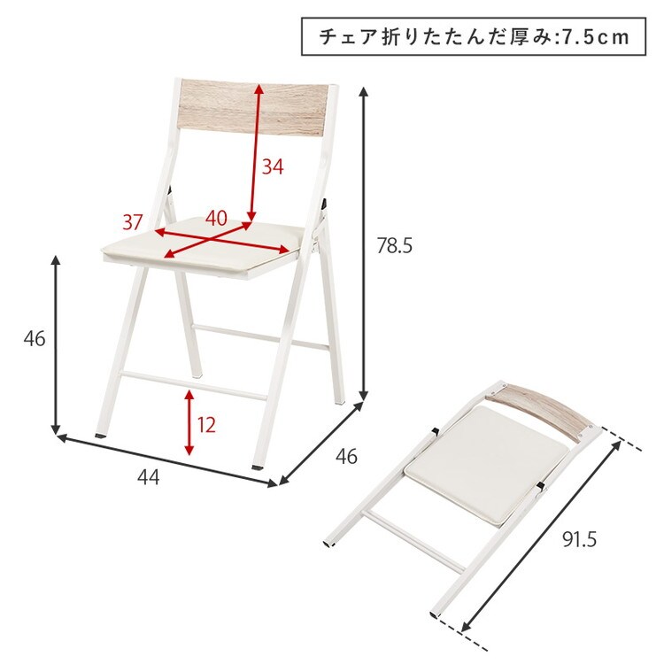 チェア:幅44×奥行46×高さ78.5cm(折りたたんだ状態の高さ:91.5cm)