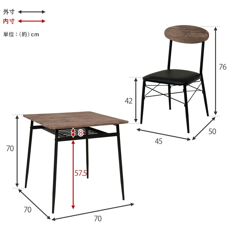 チェアー:(約)幅45×奥行50×高さ76×座面高42cm