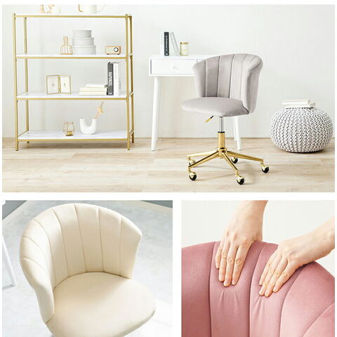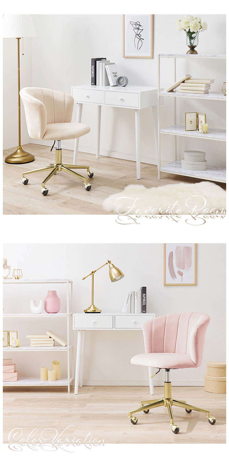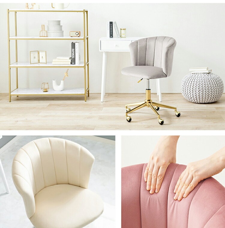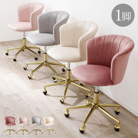 貝殻モチーフ ベロア調 おしゃれ デスクチェア デザインチェア キャスター付き 学習チェア イス 椅子 チェアー 韓国風 くすみカラー 韓国インテリア かわいい 可愛い【送料無料】