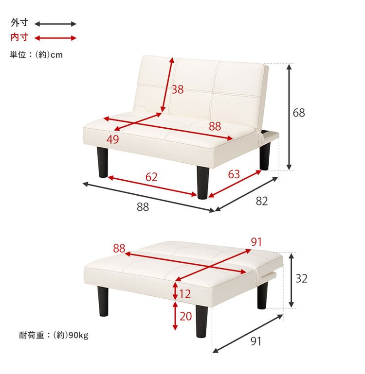 (約)幅88×奥行82~91×高さ68~32×座面高32cm