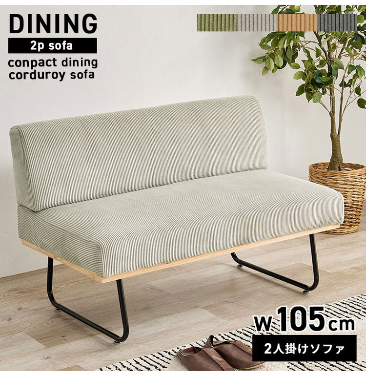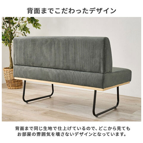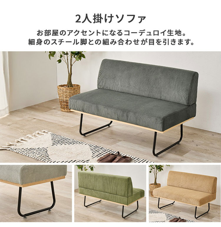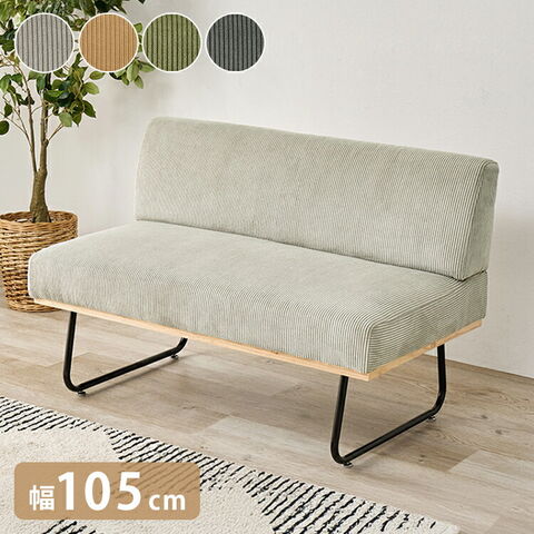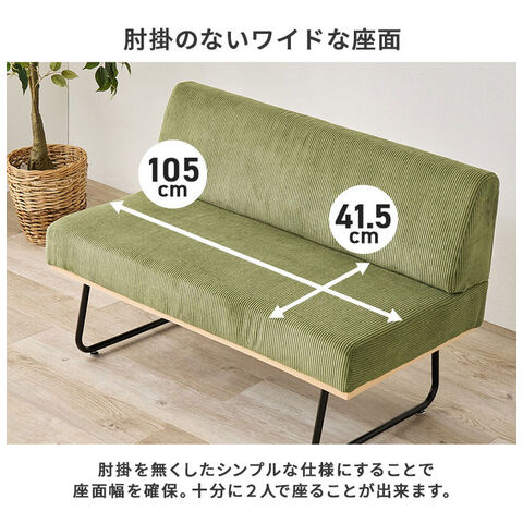 ソファ 2人掛け 幅105cm コーデュロイ 肘無し ゆったりソファ アームレスソファ スチール脚 おしゃれ ダイニングソファ インダストリアル【送料無料】