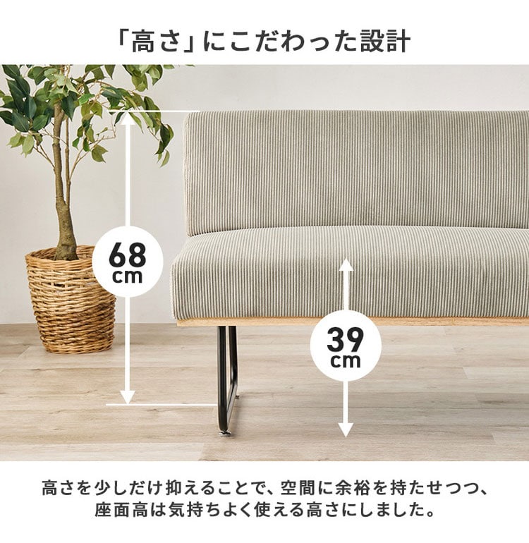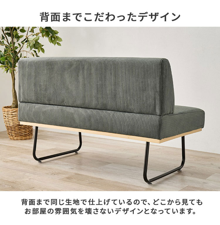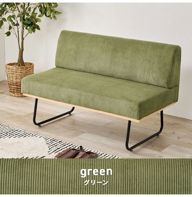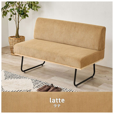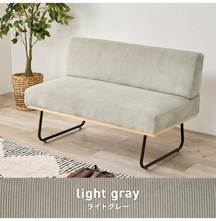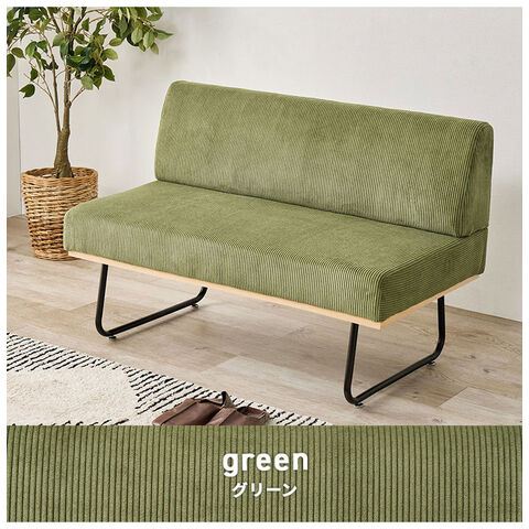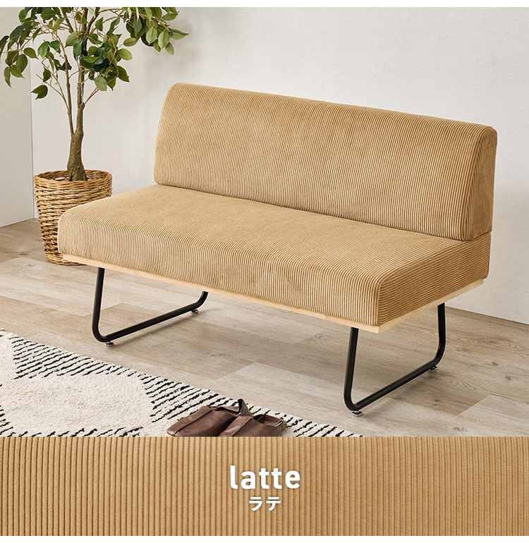 お部屋のアクセントになるコーデュロイ生地を使用。肘が無いのでコンパクトタイプだけど座面は広々。ダイニングソファやワンルームのソファとしてもおすすめ。