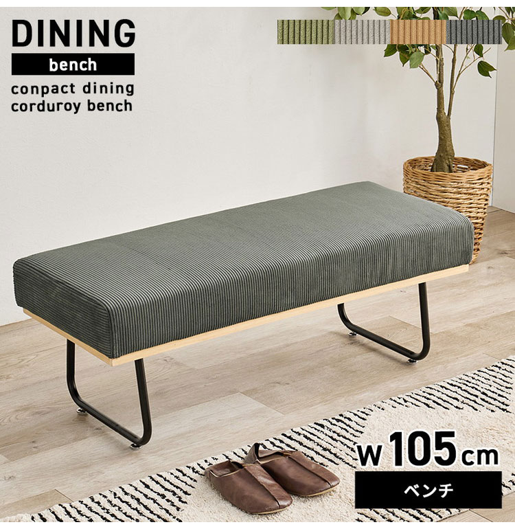 ダイニングベンチ 2人掛け 幅105cm コーデュロイ ゆったりベンチ スチール脚 おしゃれ ダイニングチェア 椅子 イス インダストリアル【送料無料】
