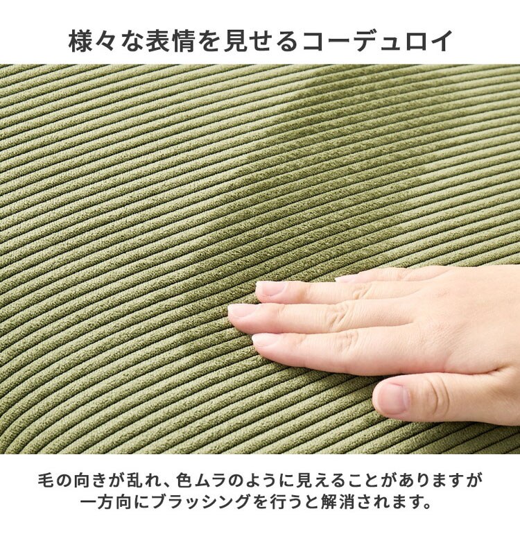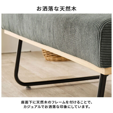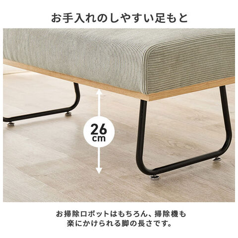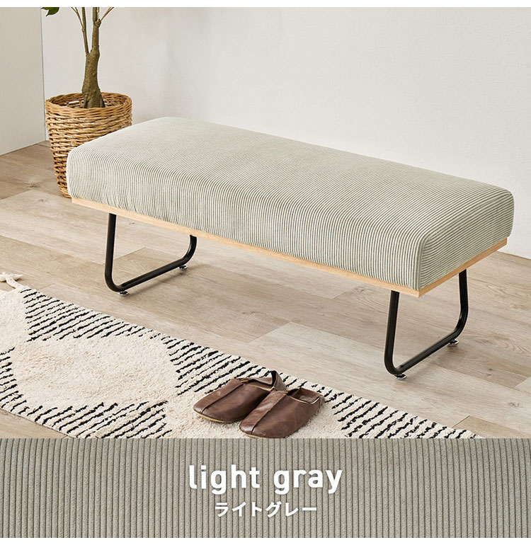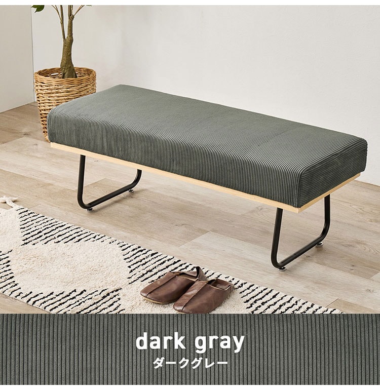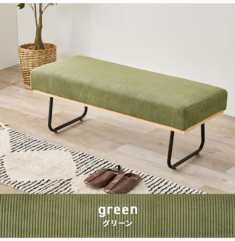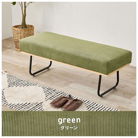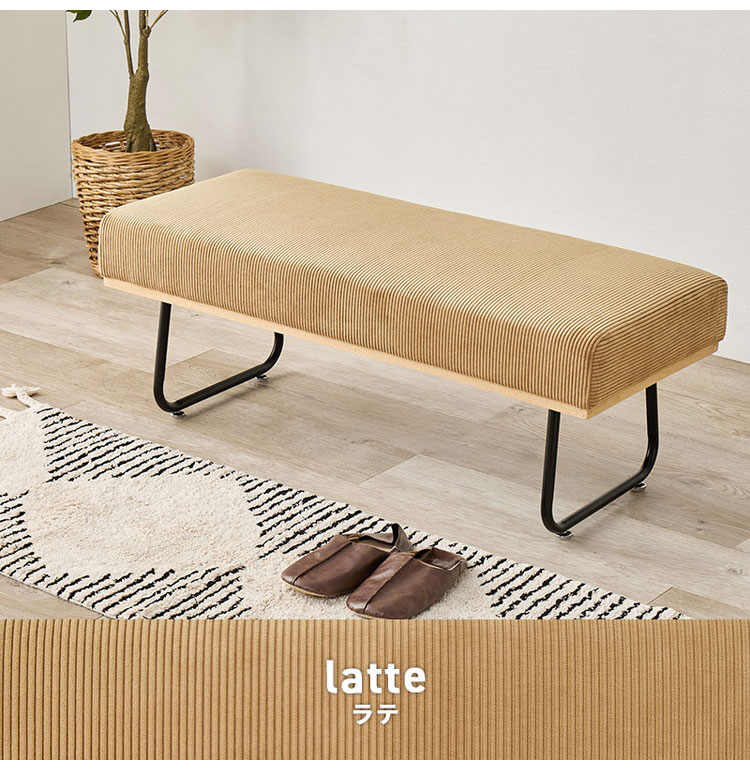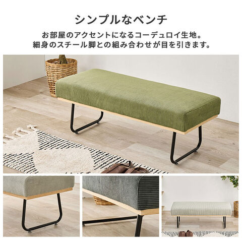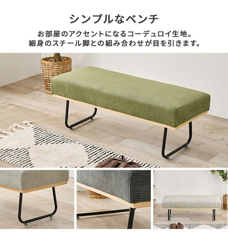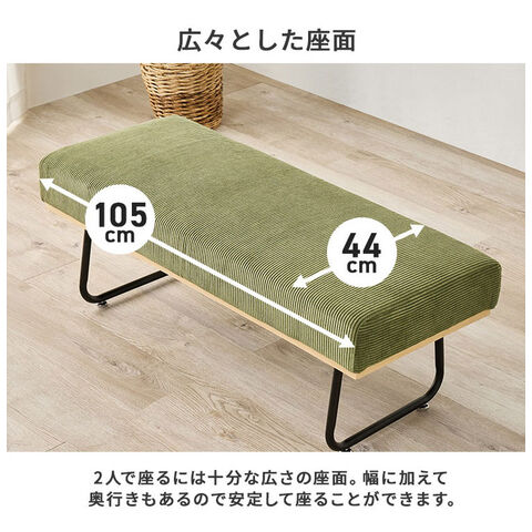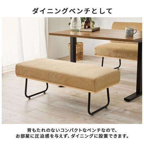 お部屋のアクセントになるコーデュロイ生地を使用。広々とした座面のベンチは、背もたれが無いのでお部屋に圧迫感を与えずダイニングにも設置できます。