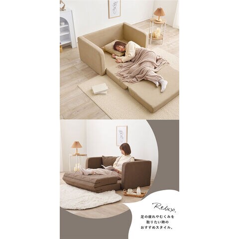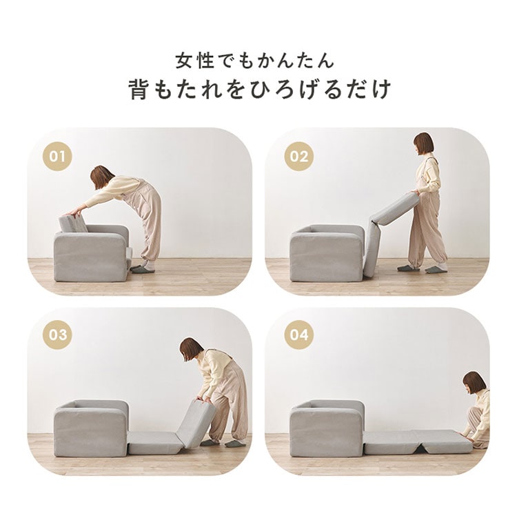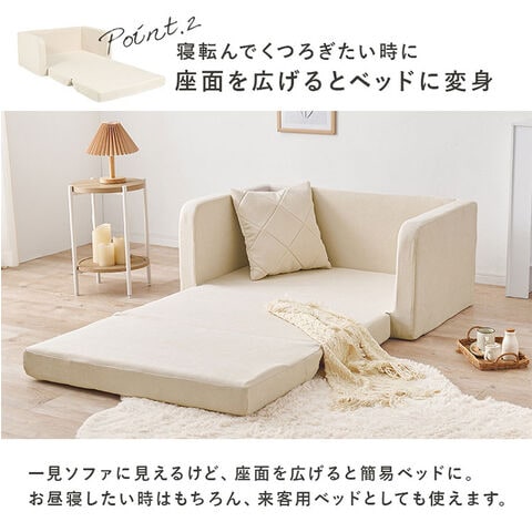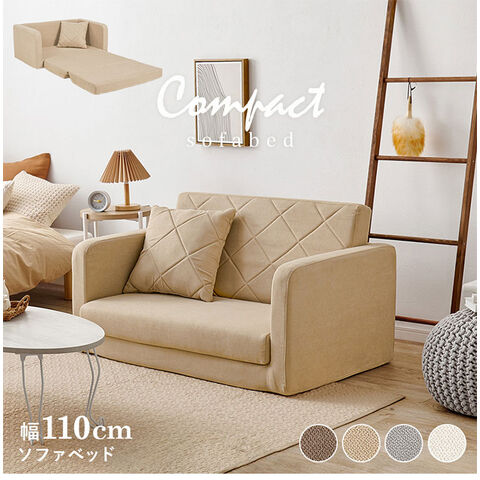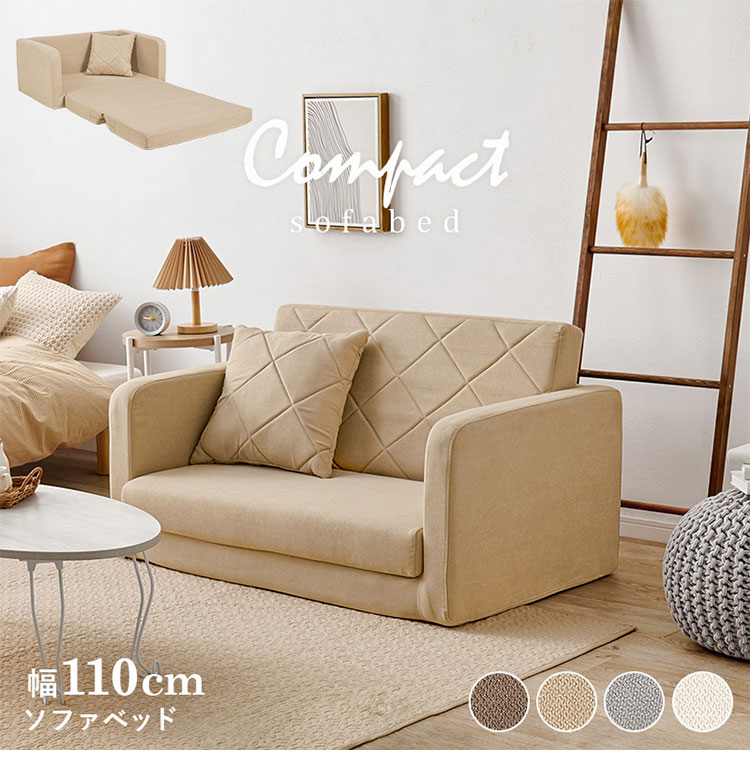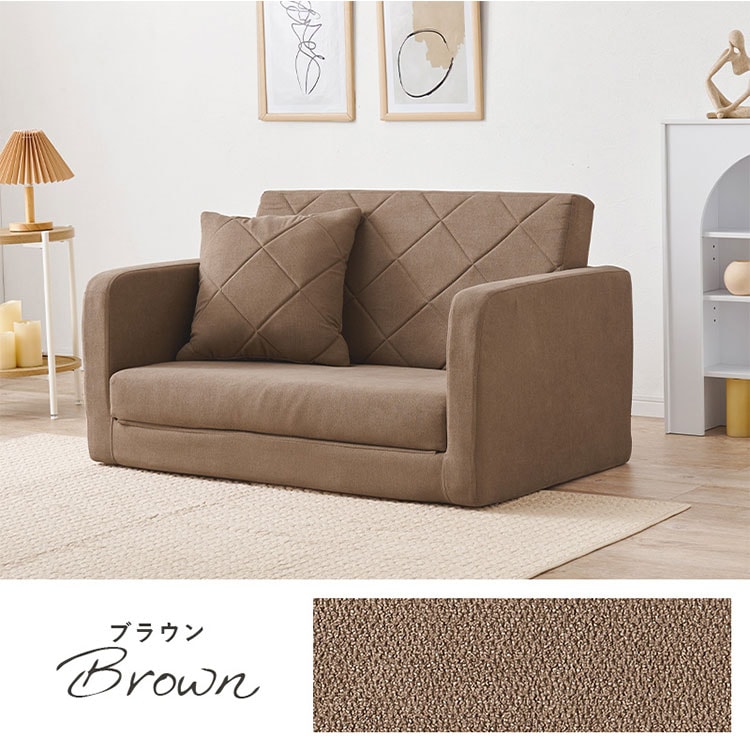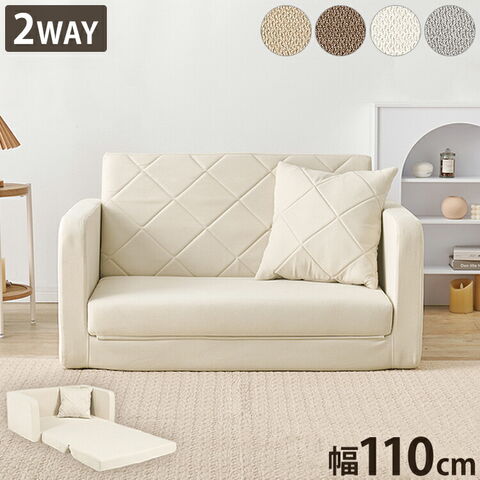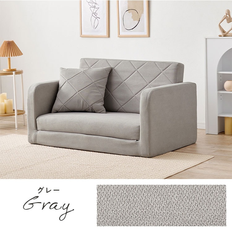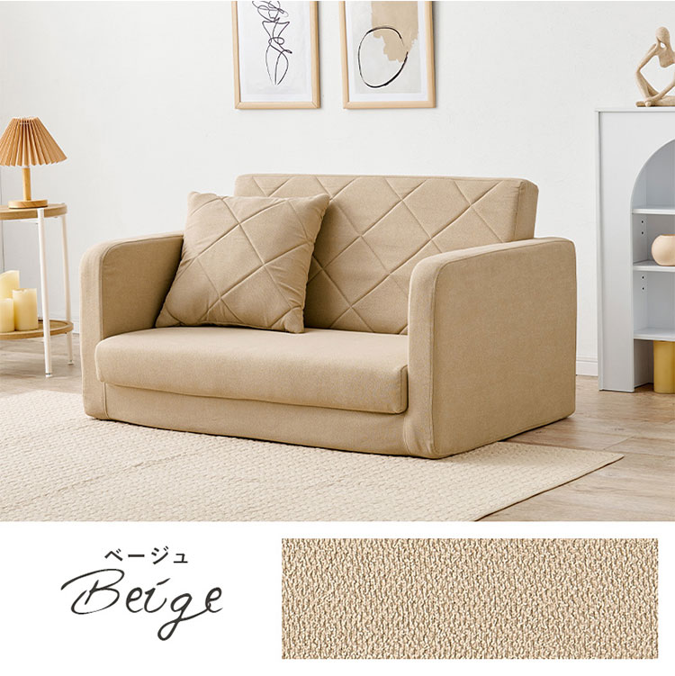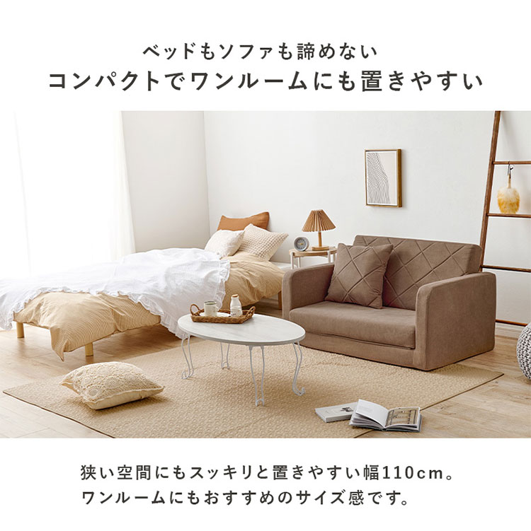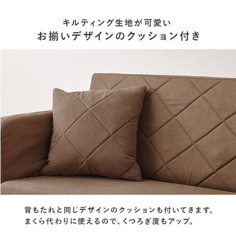 座面を広げると簡易ベッドに。コンパクトサイズでワンルームにも置きやすく、背もたれのキルティングデザインが可愛いソファベッド。