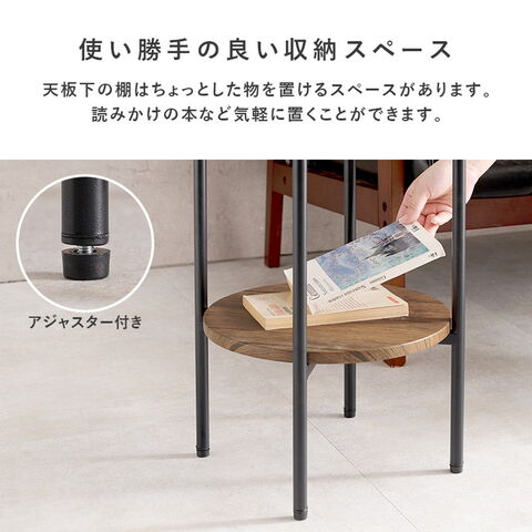 サイドテーブル 大理石調 木目調 直径30cm 円形 丸テーブル 棚付き ラック テーブル ソファサイド ベッドサイド マーブル調 コンクリート調 北欧 おしゃれ【送料無料】