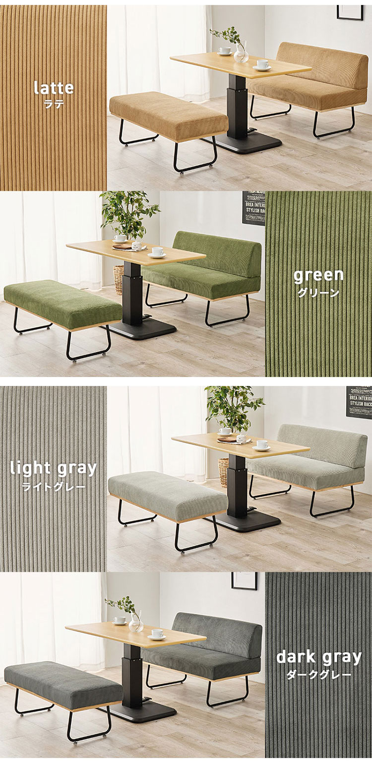 ダイニング3点セット 昇降テーブル+ソファ+ベンチ 幅115cm ダイニングテーブルセット ソファダイニング ダイニングセット コーデュロイ おしゃれ【送料無料】のレビュー