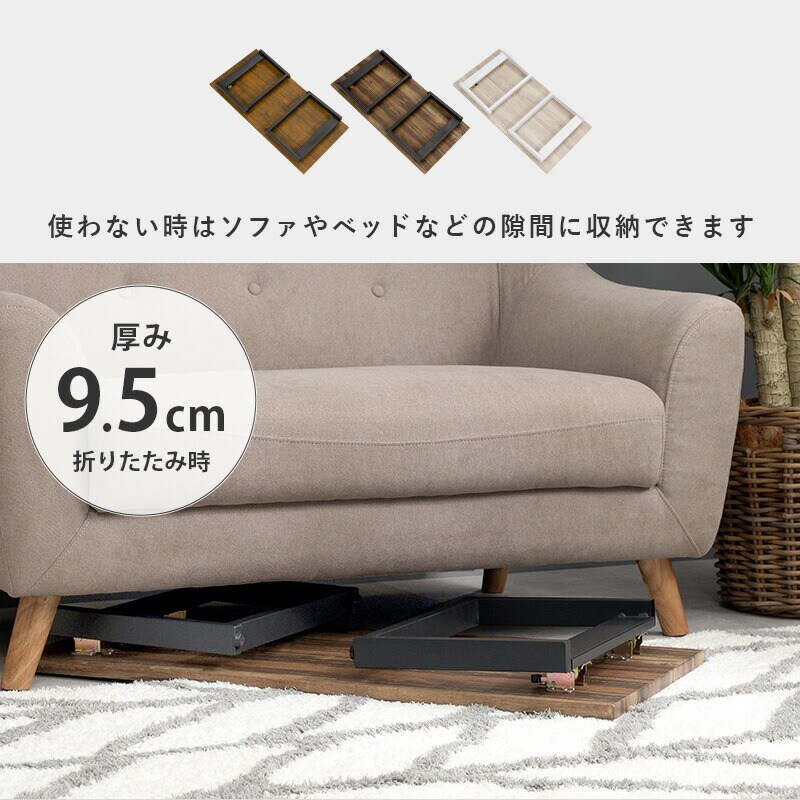 使わない時は折り畳んでソファやベッドの下などちょっとした隙間に収納できるので、1人での使用はもちろん来客時のサブテーブルとしてもおすすめ。