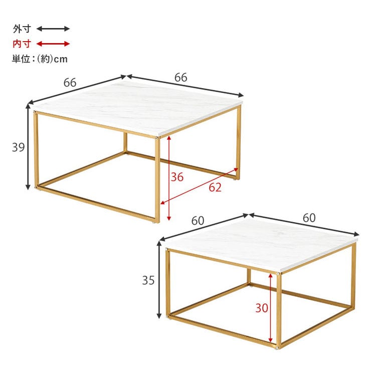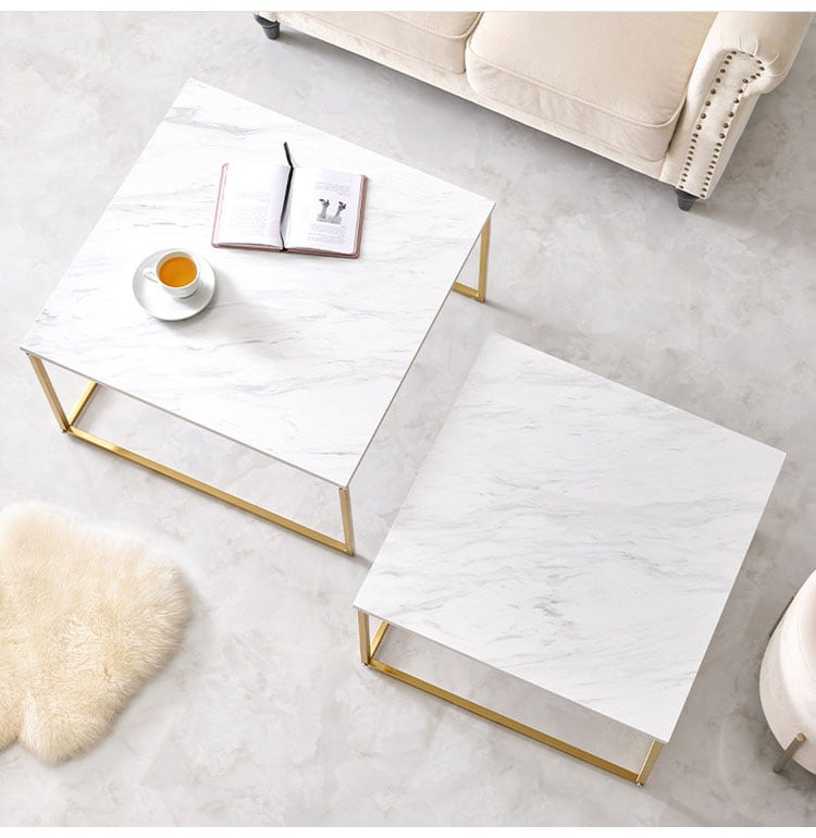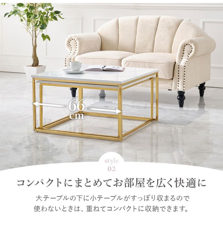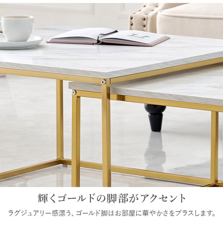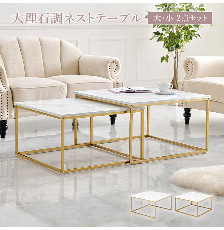 エレガント大理石調 ネストテーブル 大小2点セット 四角 ワイド サイドテーブル センターテーブル ソファテーブル ゴールド 可愛い かわいい おしゃれ【送料無料】