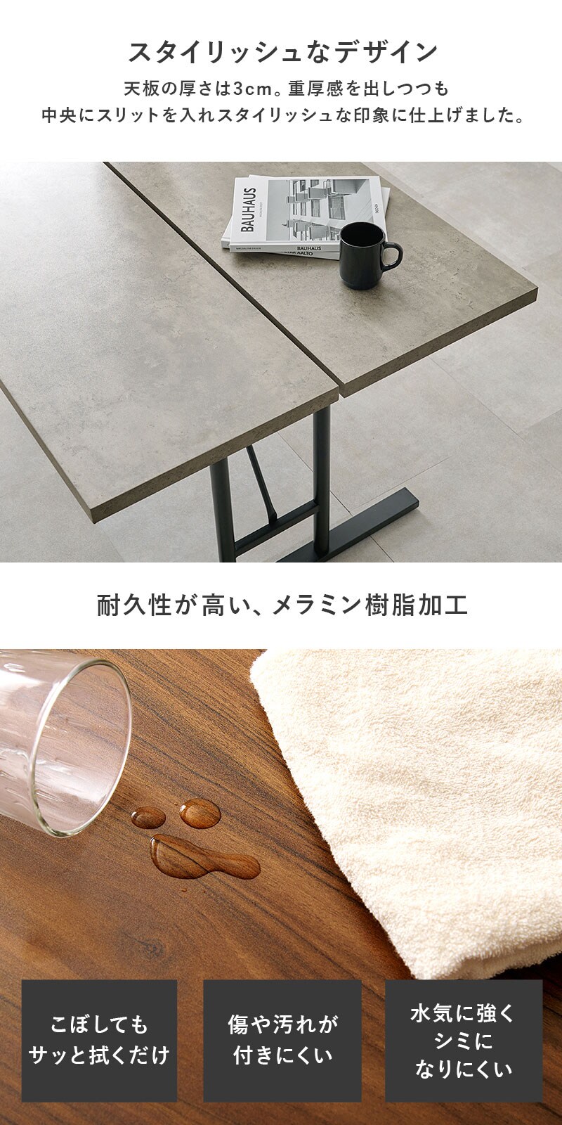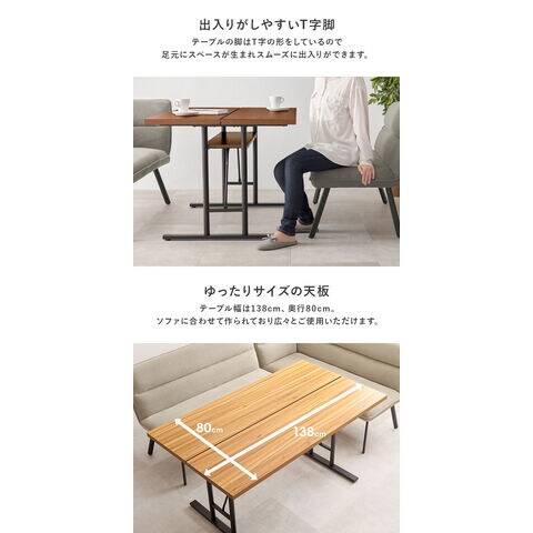 「くつろぐ」「食事する」を1台でかなえ、リビングダイニングをゆとりのある空間に。天板を広々使えるテーブルはソファ使いでも出入りがしやすいT字脚タイプ。