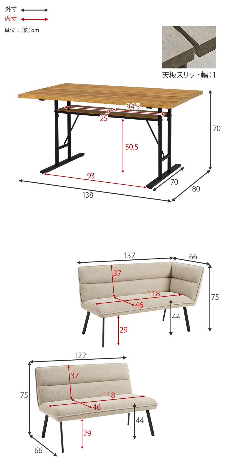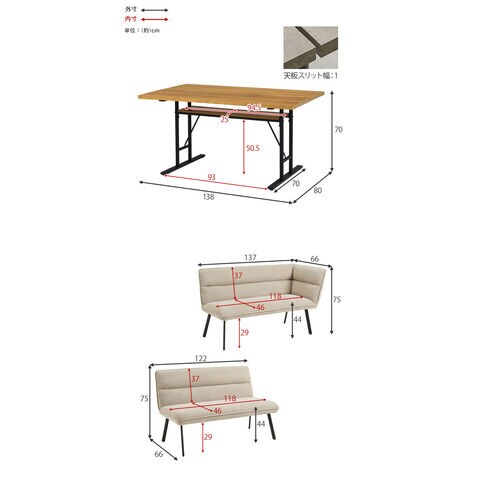 片肘:(約)幅137×奥行66×高さ75×座面高44cm