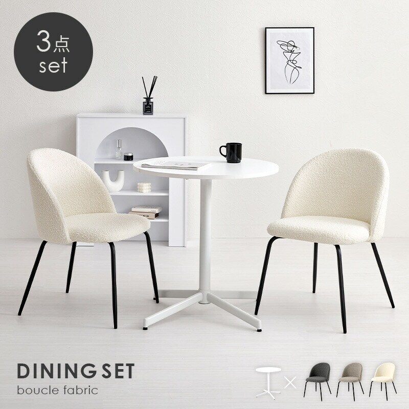 カフェテーブル&チェア 3点セット ブークレ生地 スチール脚 デザインチェア テーブル+ダイニングチェア2脚 おしゃれ 北欧 モダン 椅子 イス チェア 可愛い かわいい【送料無料】