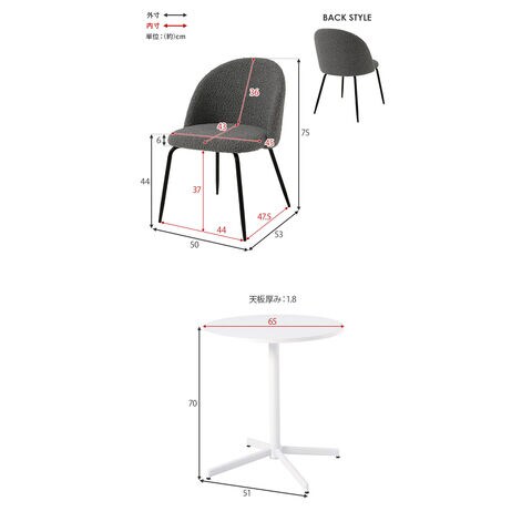 チェア:(約)幅50×奥行53×高さ75×座面高44cm