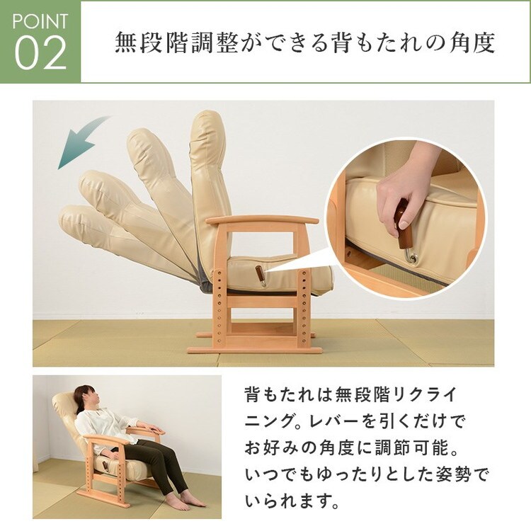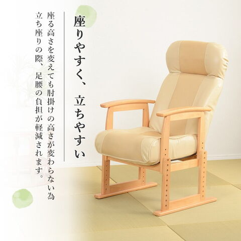 リクライニング高座椅子 肘掛け付き 高さ調節 背もたれ角度調節 ハイバック 座椅子 イス 椅子 チェア 肘付き 和室 和風 モダン お年寄り プレゼント【送料無料】