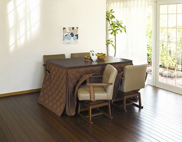 細かい編みの生地で肌触りが良く、ホコリのできにくいハイタイプこたつ掛け布団。洗濯機洗いOK。