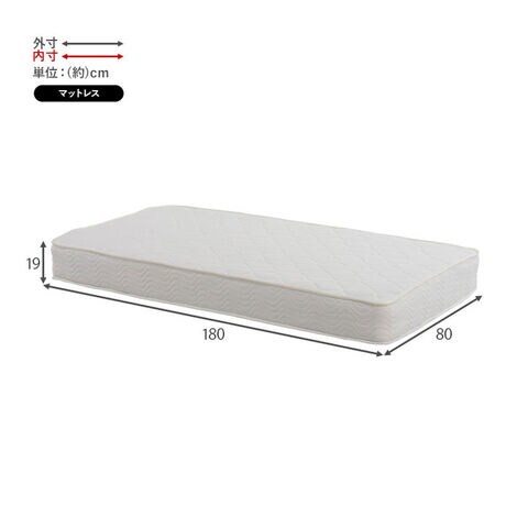 ベッド:(約)幅84×奥行194×高さ82×床面高31cm、マットレス:(約)幅80×奥行180×高さ19cm