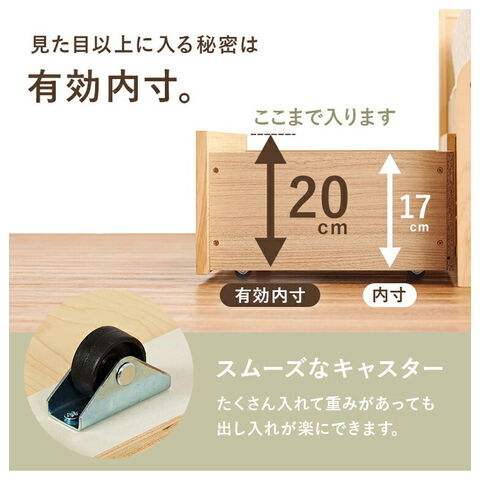 大容量引出し収納付きの天然木すのこベッド。収納や持ち運びに便利な四つ折りタイプの固綿マットレスセット