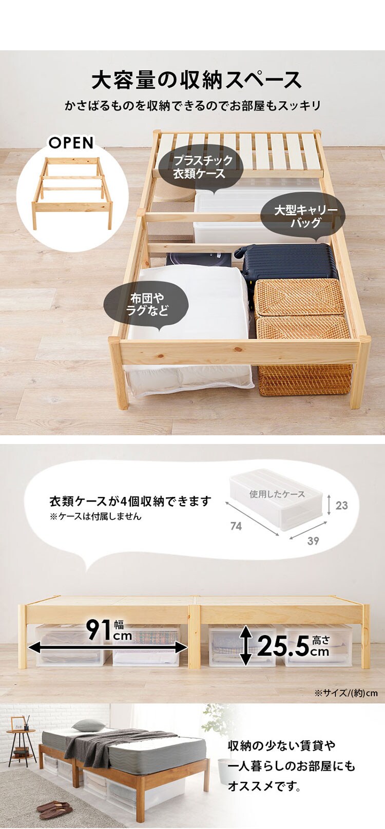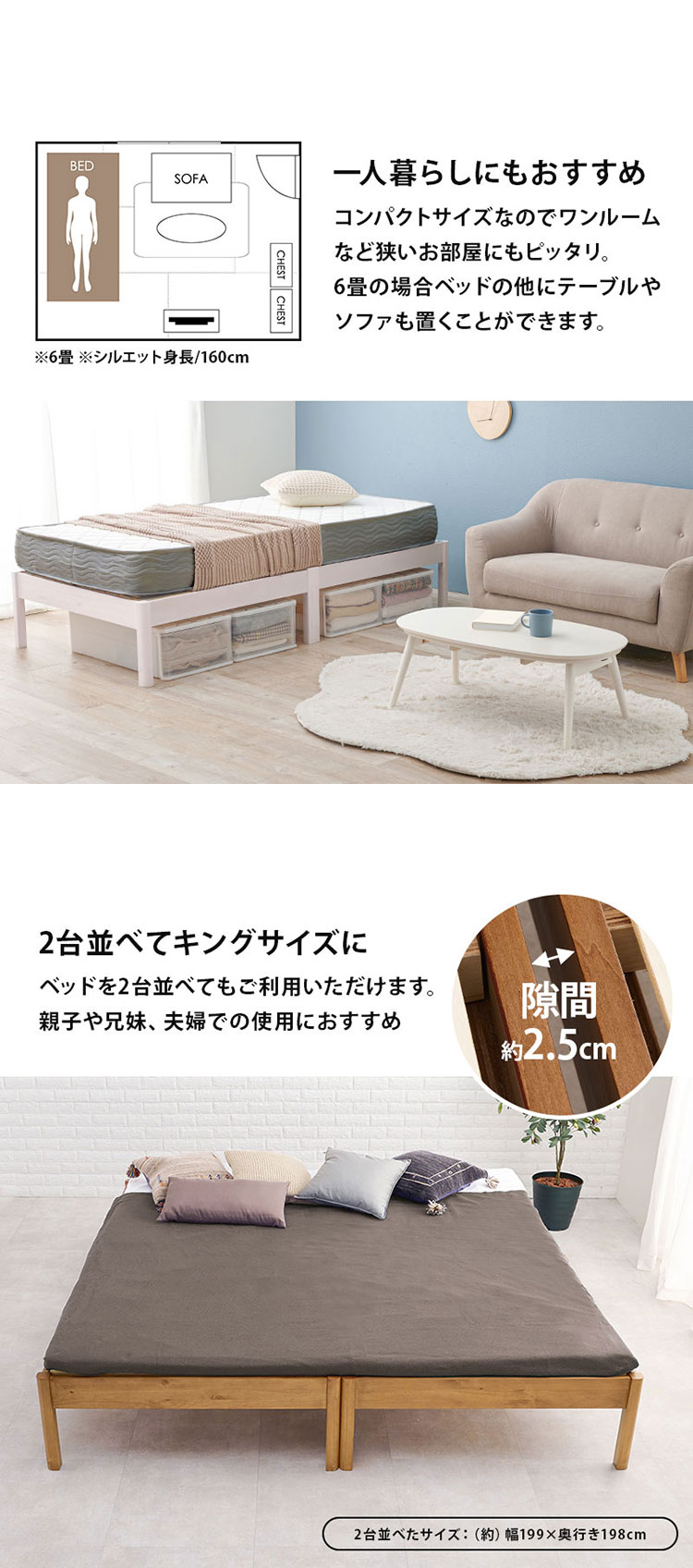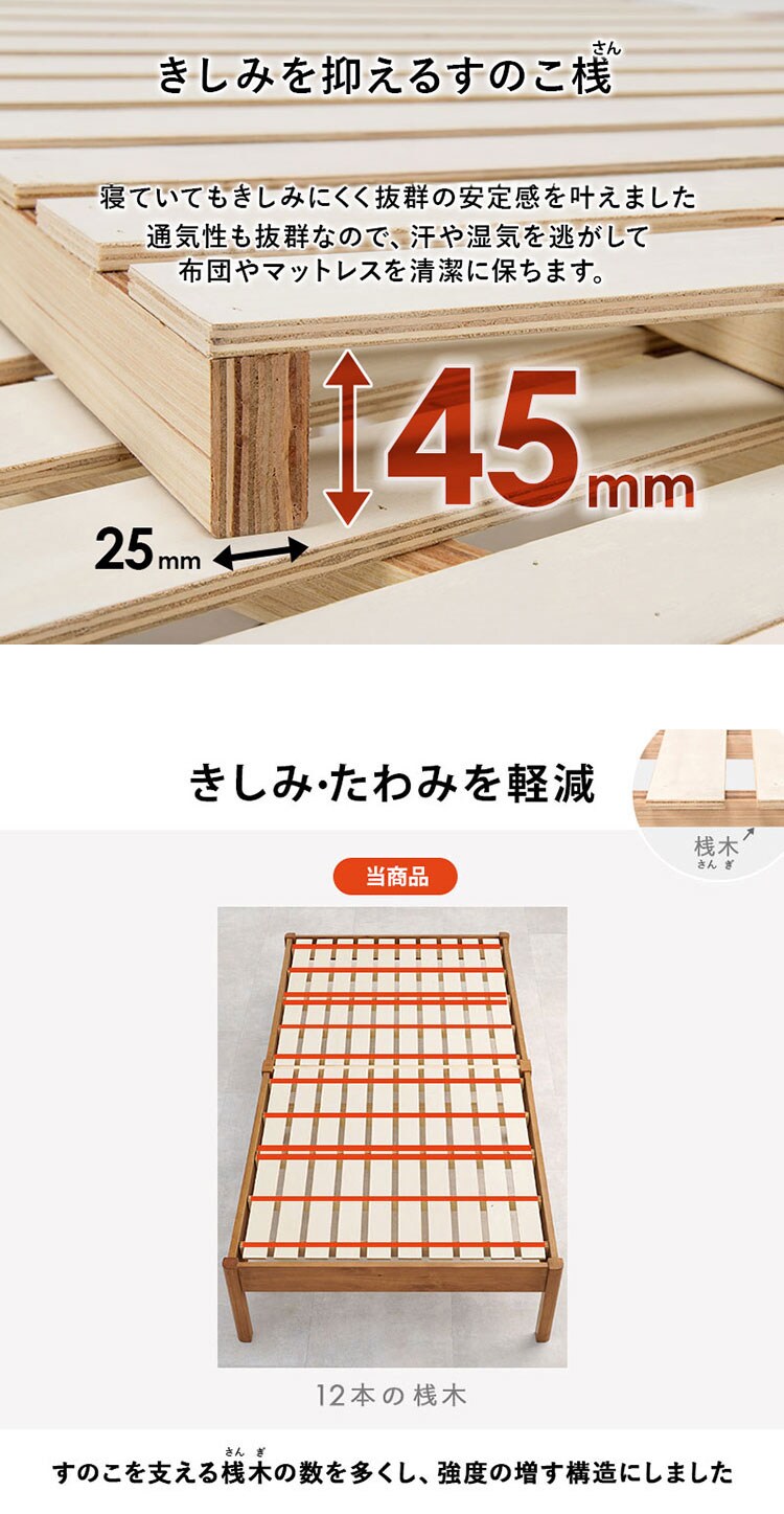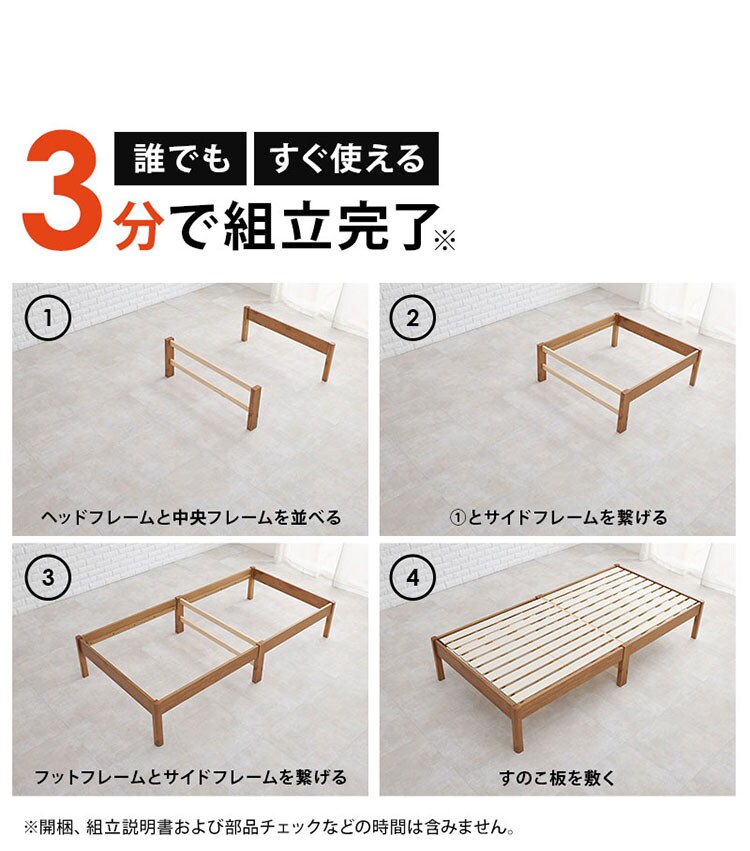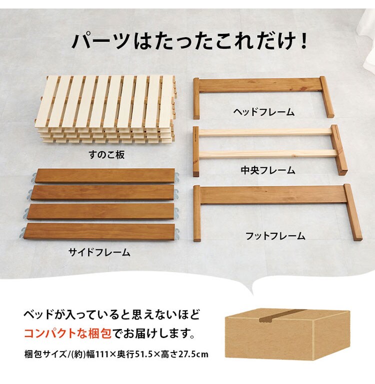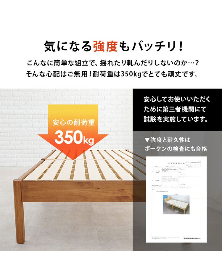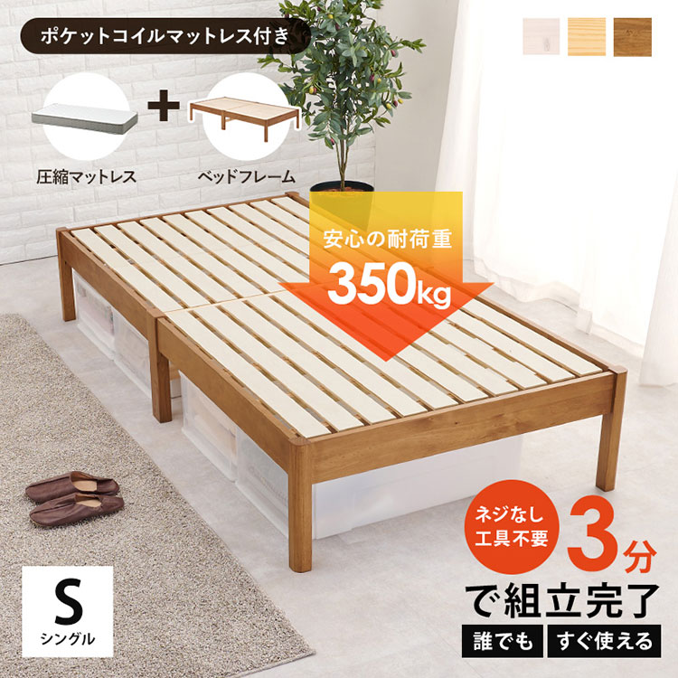 工具不要・簡単組立 ベッド シングル ポケットコイルマットレス付き 2点セット 耐荷重350kg 頑丈 ベッド ベッドフレーム すのこベッド 木製 北欧 おしゃれ【送料無料】