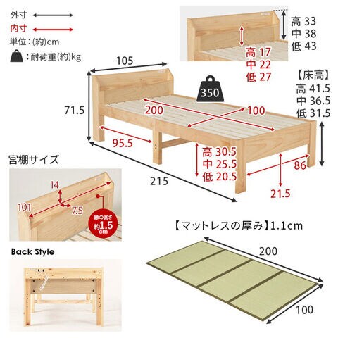 主材:天然木(パイン)、マットレス:主材:天然木(パイン)、マットレス:い草ポリエステル