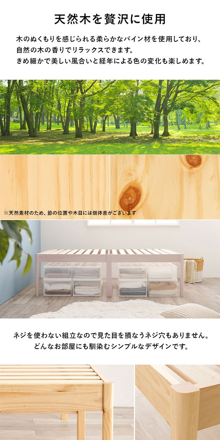 工具不要・簡単組立 すのこベッド シングル ハイタイプ 耐荷重200kg 棚なし ミドルベッド ベッドフレーム 木製 頑丈 北欧 ネジ無し シンプル おしゃれ 新生活【送料無料】