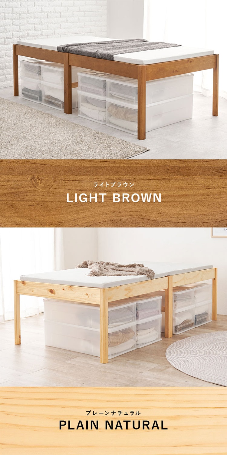 ネジなし、工具不要で簡単組立。床面下に大容量の収納ができ、スッキリシンプルなデザインのシングルベッド。