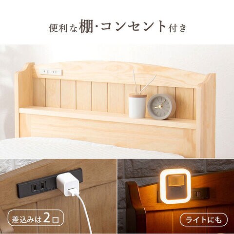 カントリー調すのこベッド セミシングルショート ボンネルコイルマットレス付き ベッドフレーム マットレス すのこベッド 棚付き コンセント付き 木製 おしゃれ【送料無料】