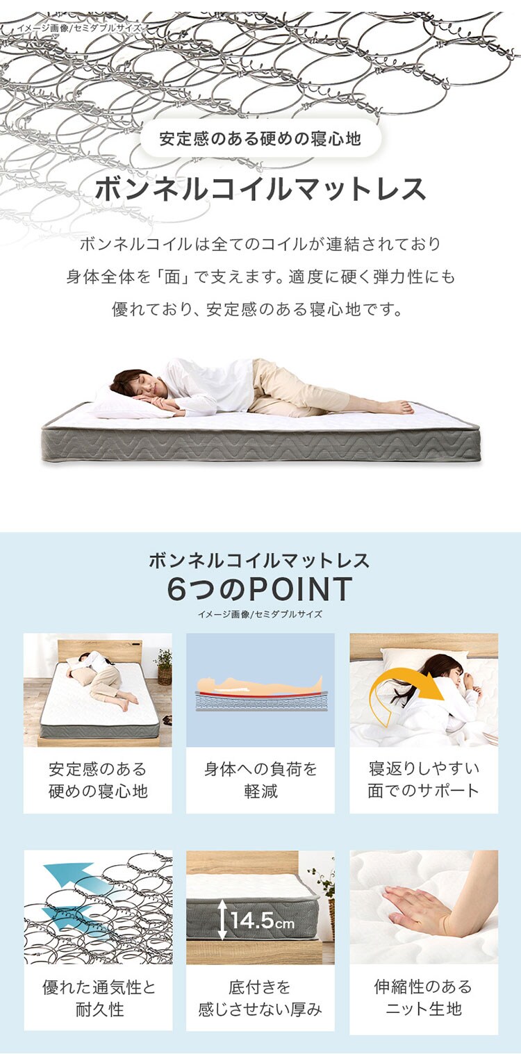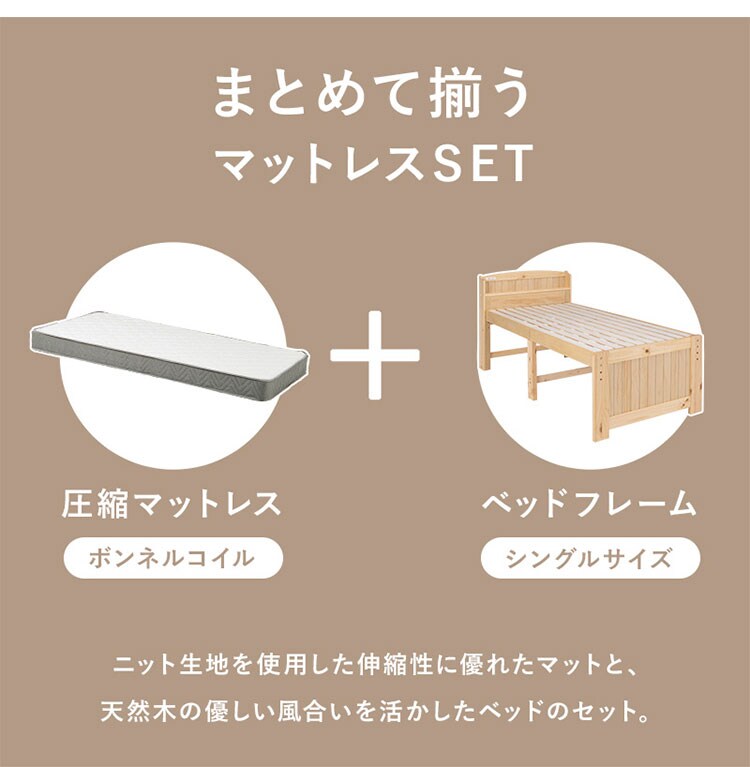 主材:天然木(パイン材)、マットレス:主材:天然木(パイン材)、マットレス:ボンネルコイルポリエステル