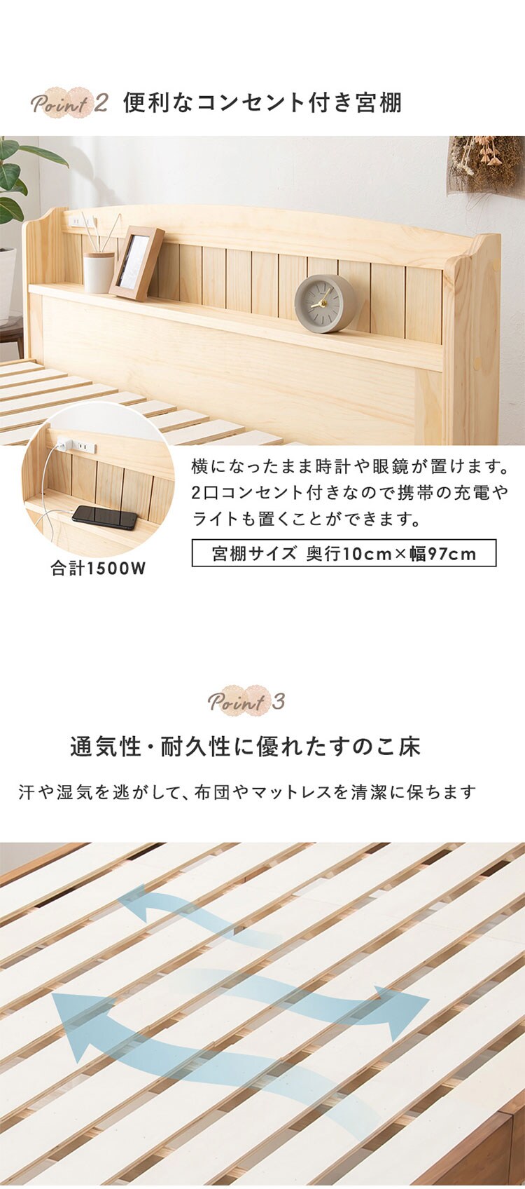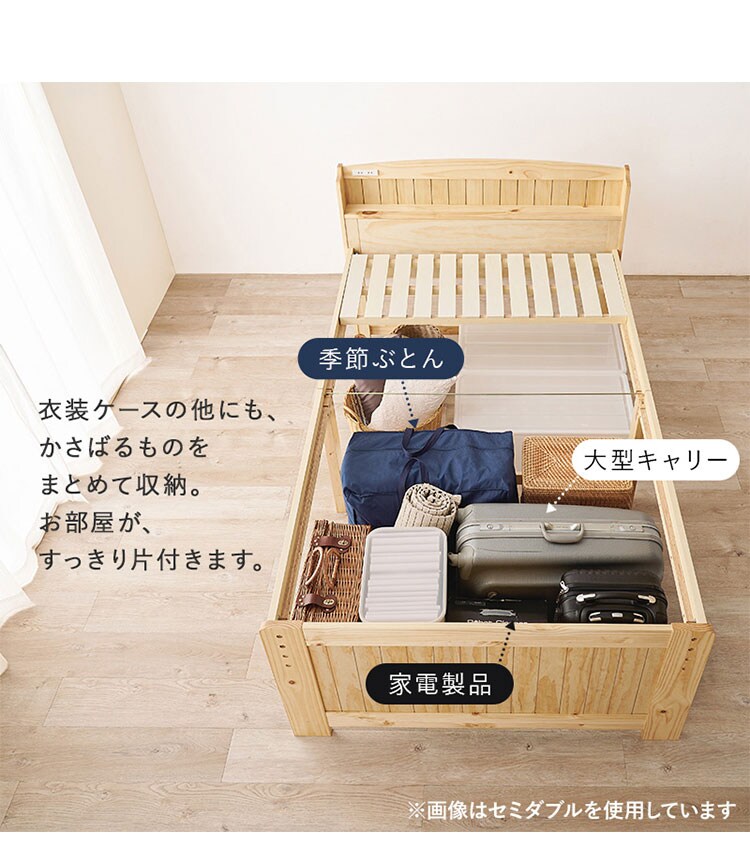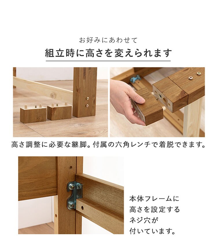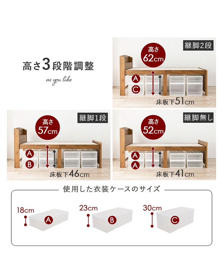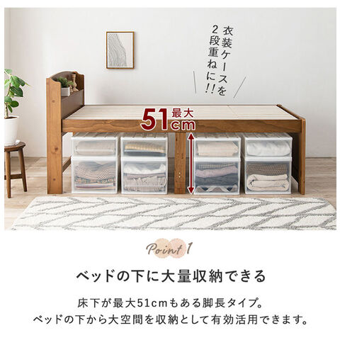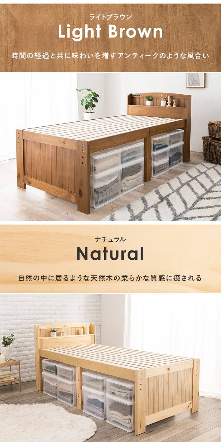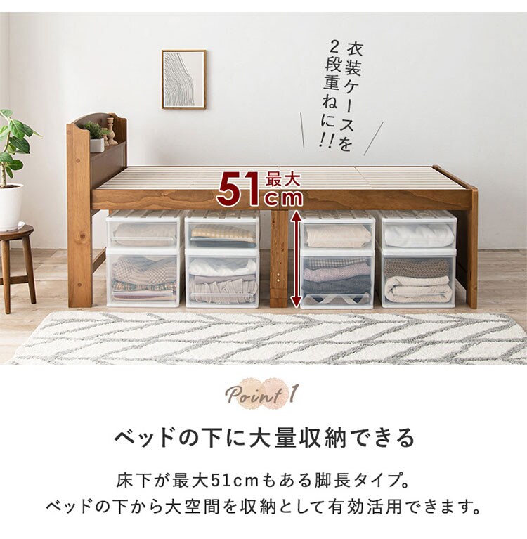 床面高さが3段階に変えられ、床面下に大容量収納が可能な天然木すのこベッド。しっかりとした寝心地のボンネルコイルマットレスセット