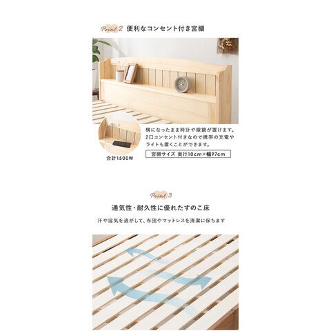 棚付きすのこベッド シングル ボンネルコイルマットレス付き 2点セット 耐荷重200kg 頑丈 高さ調節 ベッド 棚付き すのこベッド ベッドフレーム カントリー調 宮棚付き 北欧 木製 おしゃれ【送料無料】