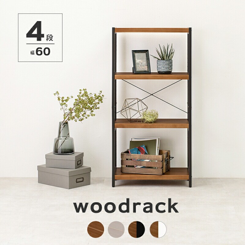 オープンラック 4段 幅60cm 木製 天然木 棚板高さ調節 魅せる収納 棚 シェルフ 北欧 フレンチカントリー調 かわいい おしゃれ【送料無料】