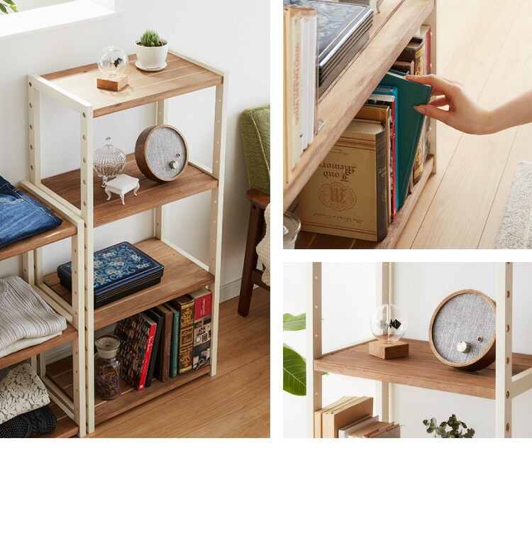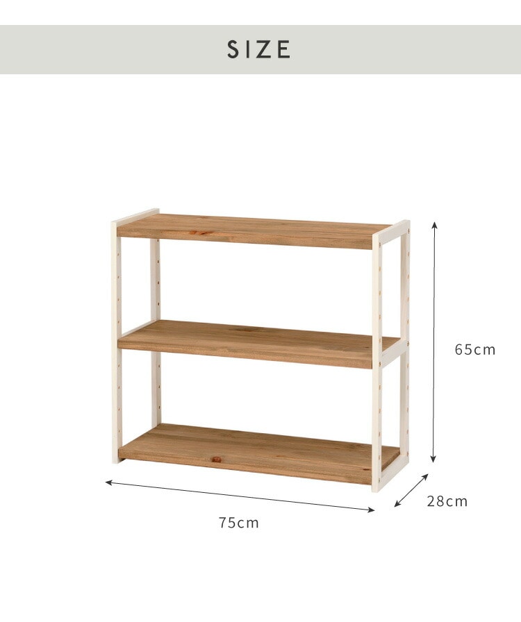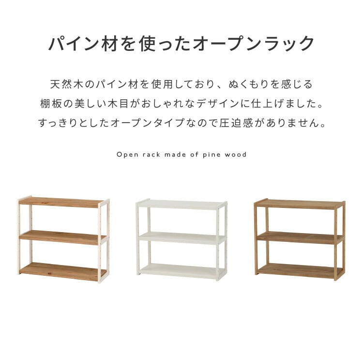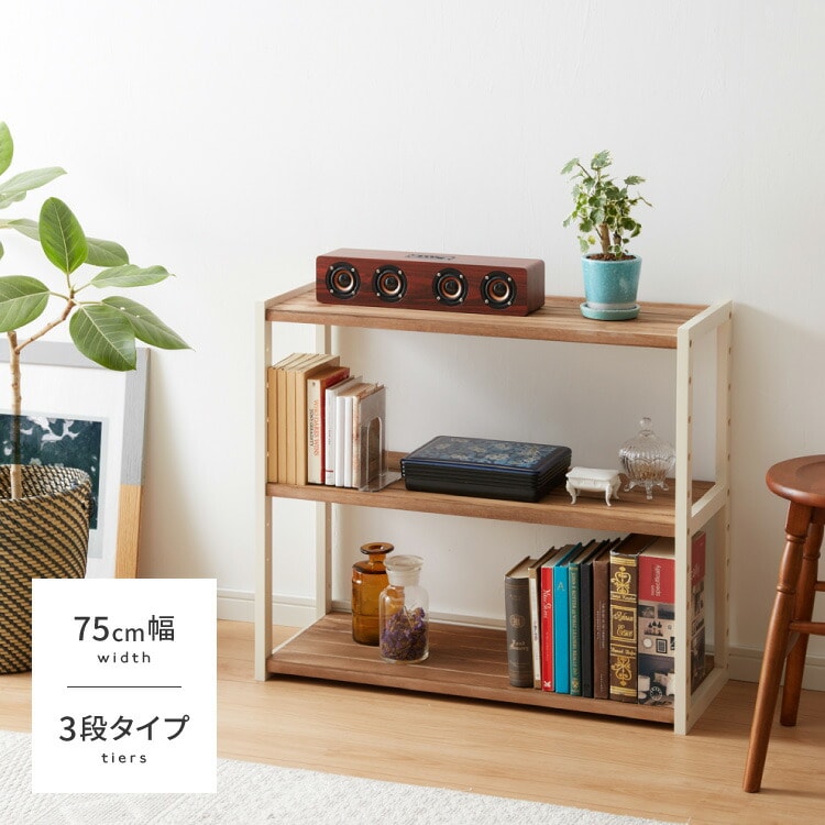 ラック オープンラック 3段 幅75cm 天然木 シェルフ 本棚 収納 ディスプレイ フリーラック カントリー調 多目的ラック【送料無料】