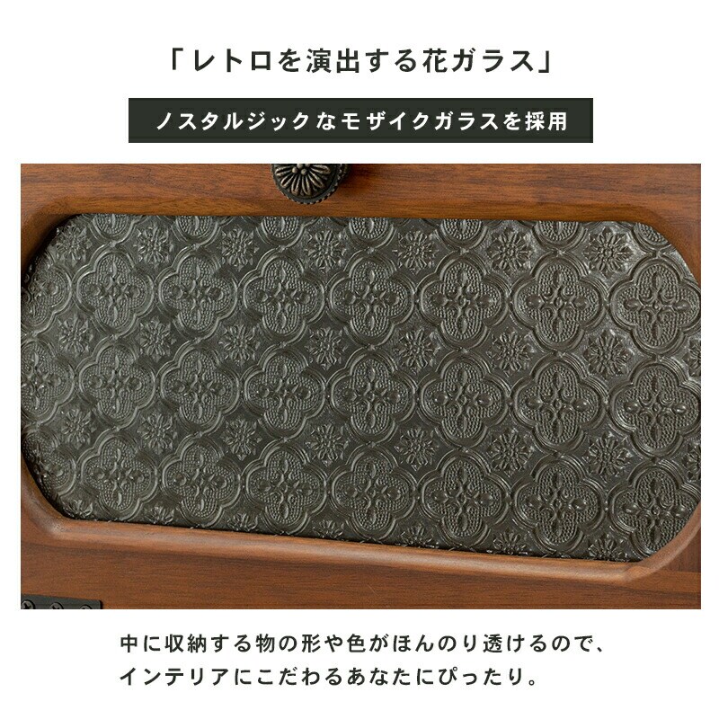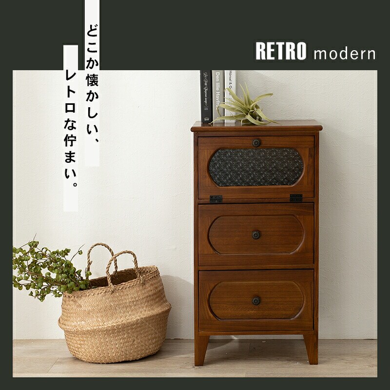 チェスト 幅42 完成品 3段 レトロガラス フラップ扉 引き出し収納 リビングチェスト リビングボード アンティーク レトロ モダン おしゃれ【送料無料】