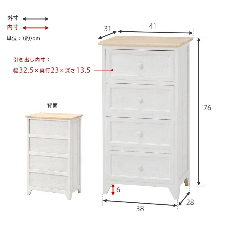 チェスト 4段 幅41 完成品 収納 取っ手 かわいい フレンチカントリー アンティーク 萩原 MCH-5274NAW 北欧 おしゃれ【送料無料】