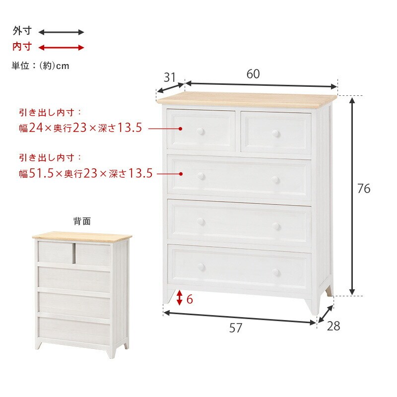 チェスト 4段 幅60 完成品 収納 取っ手 かわいい フレンチカントリー アンティーク 萩原 MCH-5276NAW 北欧 おしゃれ【送料無料】のレビュー