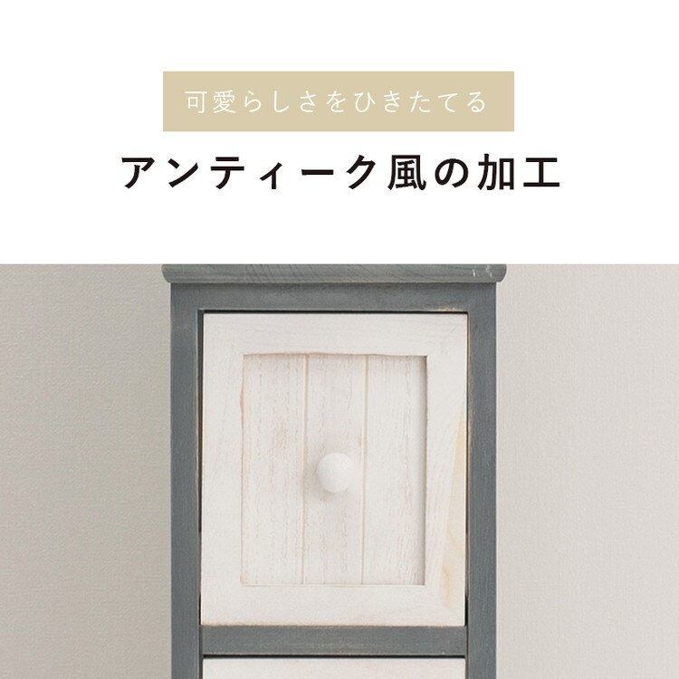 シャビーシックなデザインで、シンプルな中にもフレンチテイストをプラスした可愛らしいデザインのチェスト。